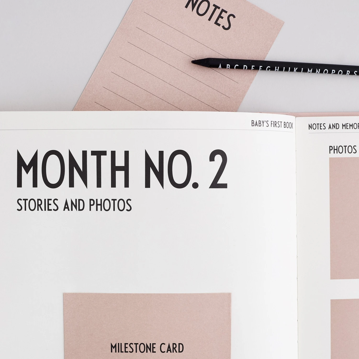 Leg het eerste jaar van uw baby vast in dit prachtige ‘My first year’-boek van het Deense designmerk Design Letters. Het boek behandelt een aantal verschillende onderwerpen, van bijvoorbeeld een stamboom tot ruimte voor de eerste haarlok. Het boek bestaat uit 12 kaarten: één voor elke maand van het eerste jaar. Het lettertype is afkomstig uit Arne Jacobsens’ AJ Vintage ABC.