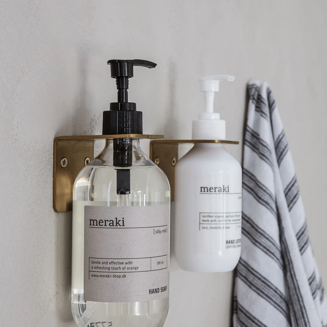 Praktische en stijlvolle muurbevestiging met geborstelde afwerking van Meraki, om de zeepdispenser van hetzelfde merk aan de muur te bevestigen. Geschikt voor zowel handzeep en handlotion als afwasmiddel. Om de dispenser in de houder te bevestigen schroeft u de pomp van de fles eraf, steekt u deze vervolgens door de opening van de bevestiging en schroeft u deze daarna weer vast op de fles.